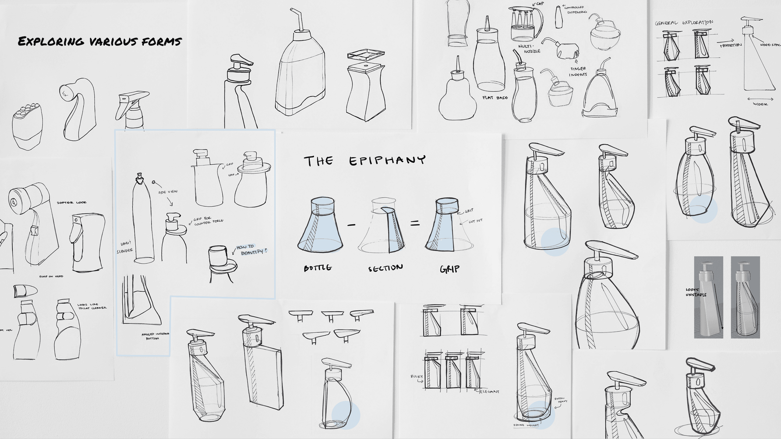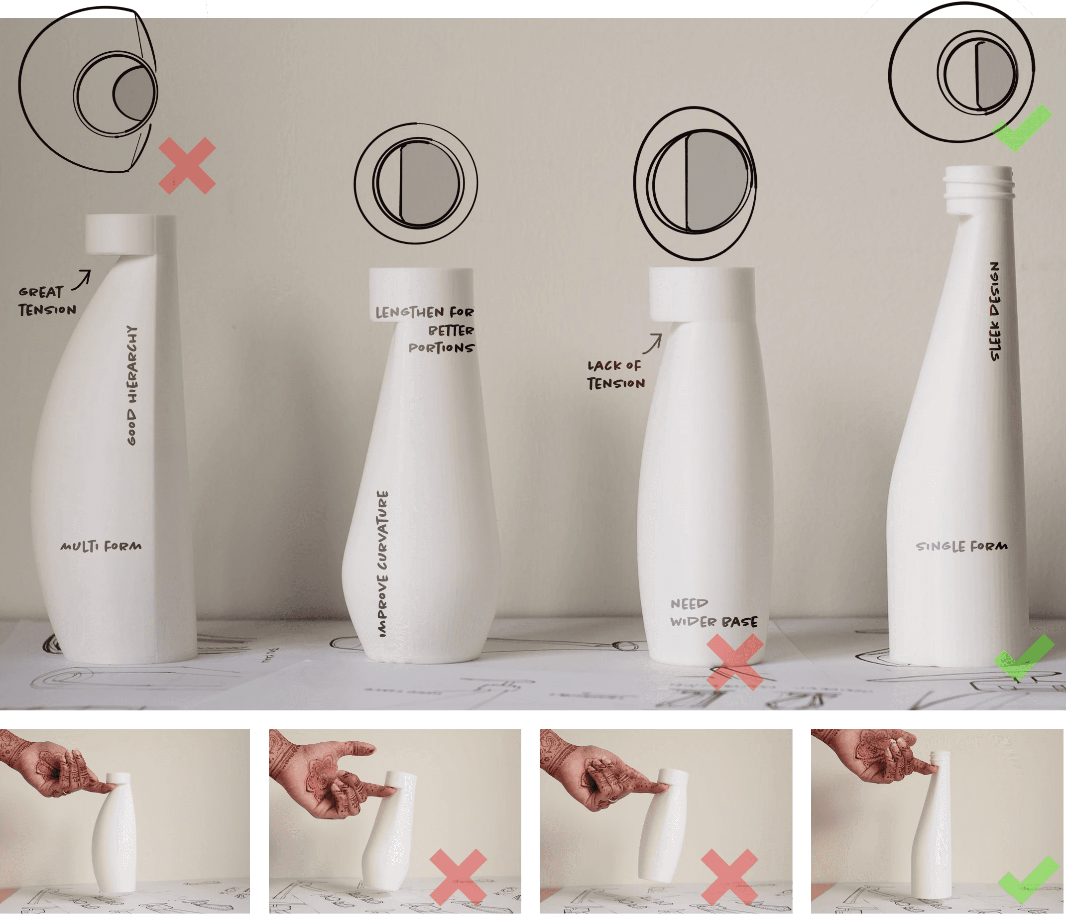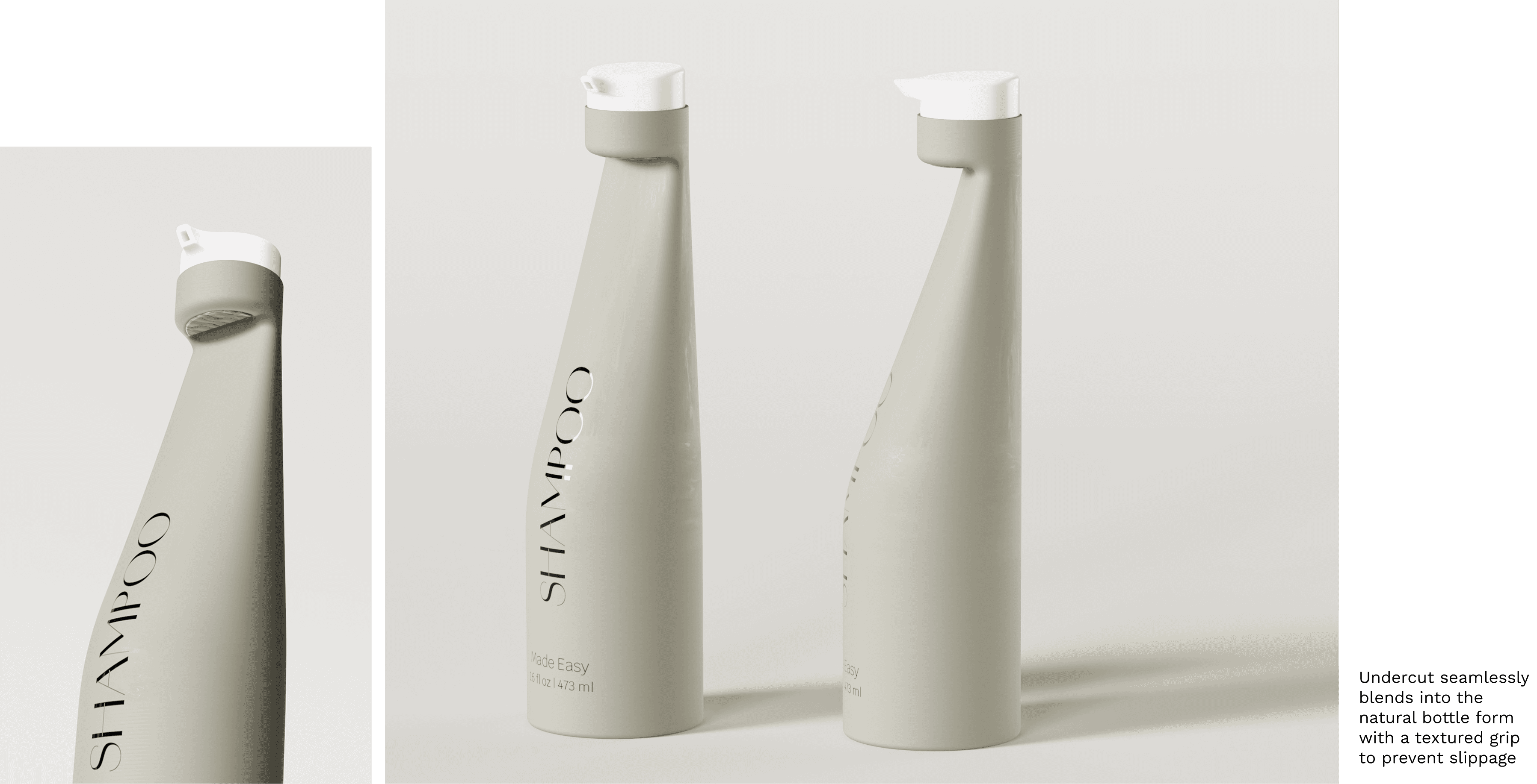 I analyzed common shampoo bottle designs and identified usability challenges for one-handed operation to redesign a bottle for all.